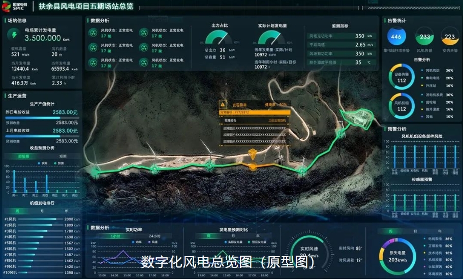 公司快速响应落实集团战略部署,在该项目中主要负责具有自主知识产权的数字化风电应用、iEnergy边平台、“微芯”智能传感器和智能预警诊断等建设内容,构建智能监测、智能安防、智慧运维、智慧经营、智能巡检等数字化风电应用,并发布企业标准《陆上风电场数字化评价要求》,促进智慧场站数字化扎根产业数据中台。